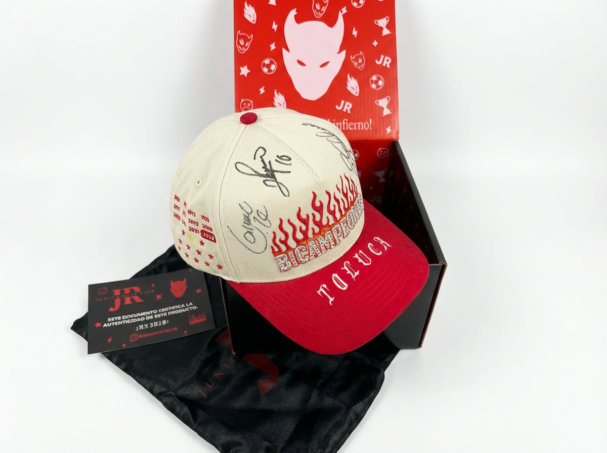 La gorra viene sin firmas, la imagen mostrada es para exhibición del producto.